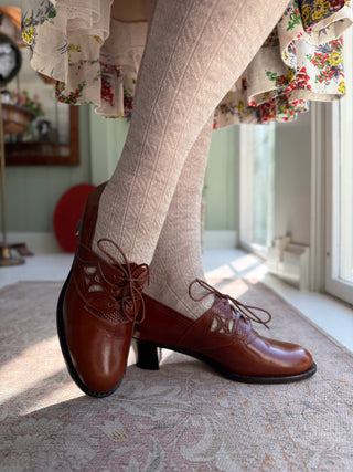 Early 1940s everyday lace-up shoes - Cognac brown - Emily
