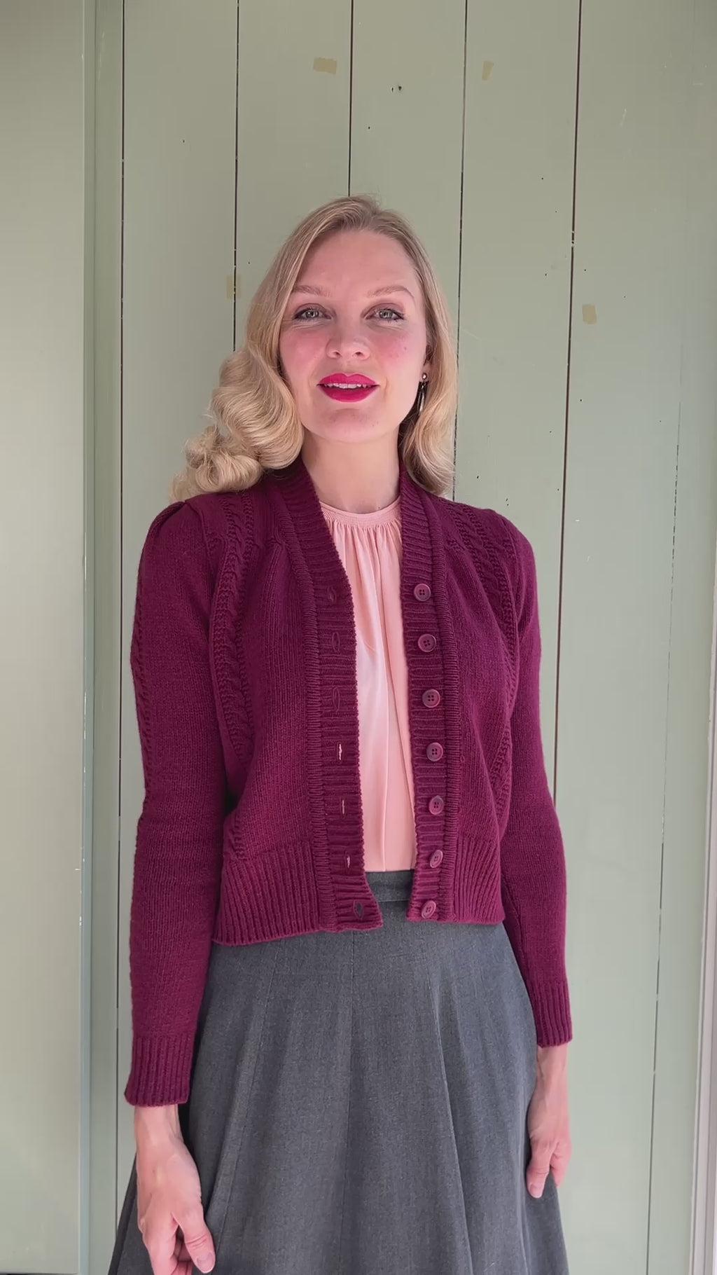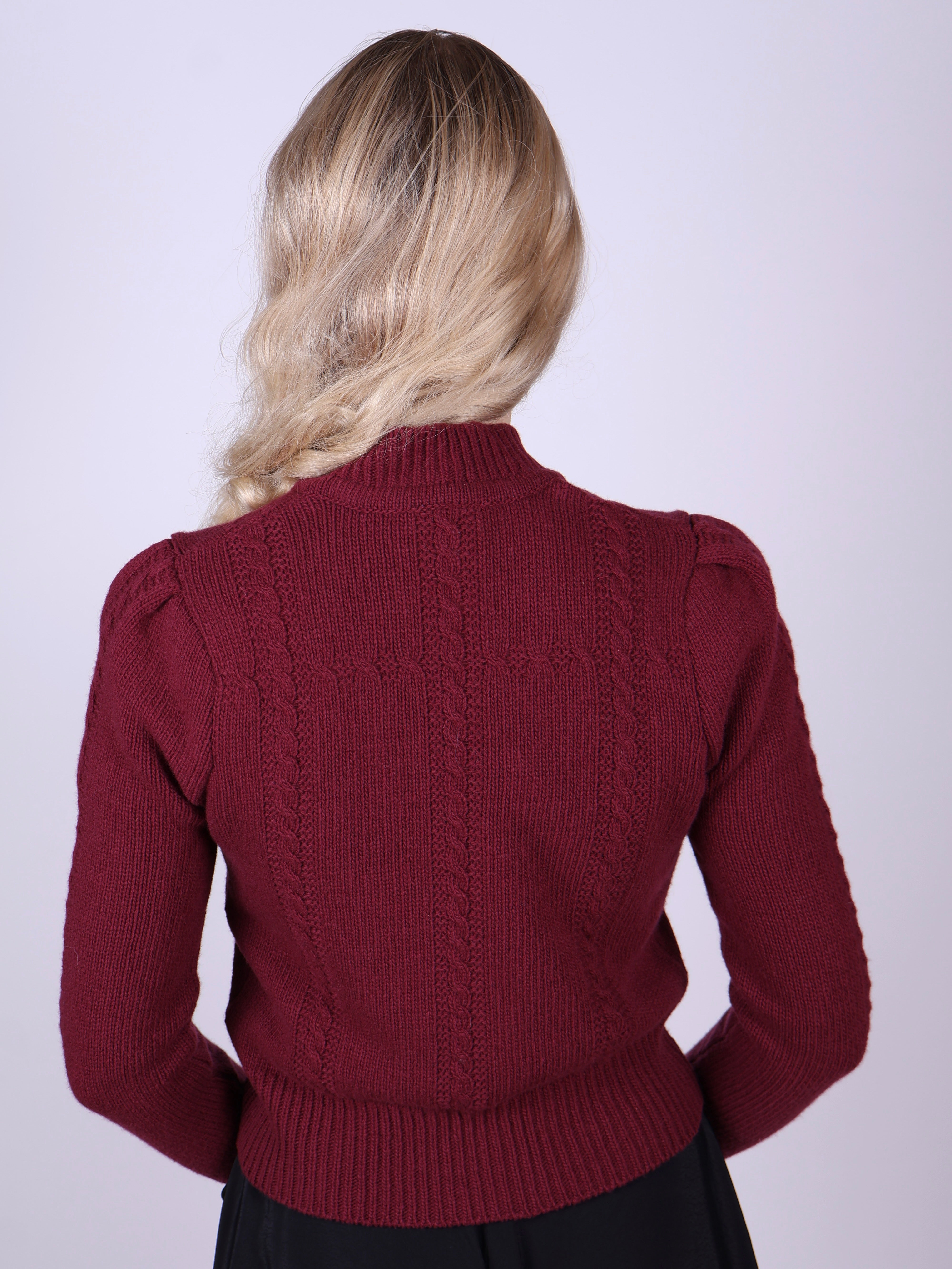 Cute and feminine cable knit 1940s cardigan - Merino - Burgundy - Astrid