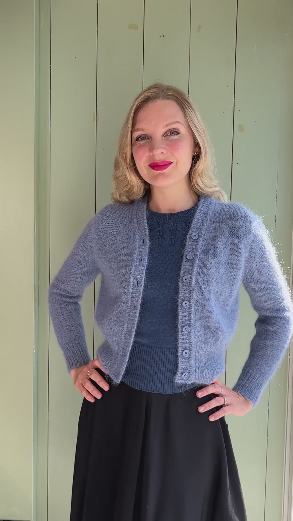 1940s style mohair cardigan - Dusty blue - Lisbeth