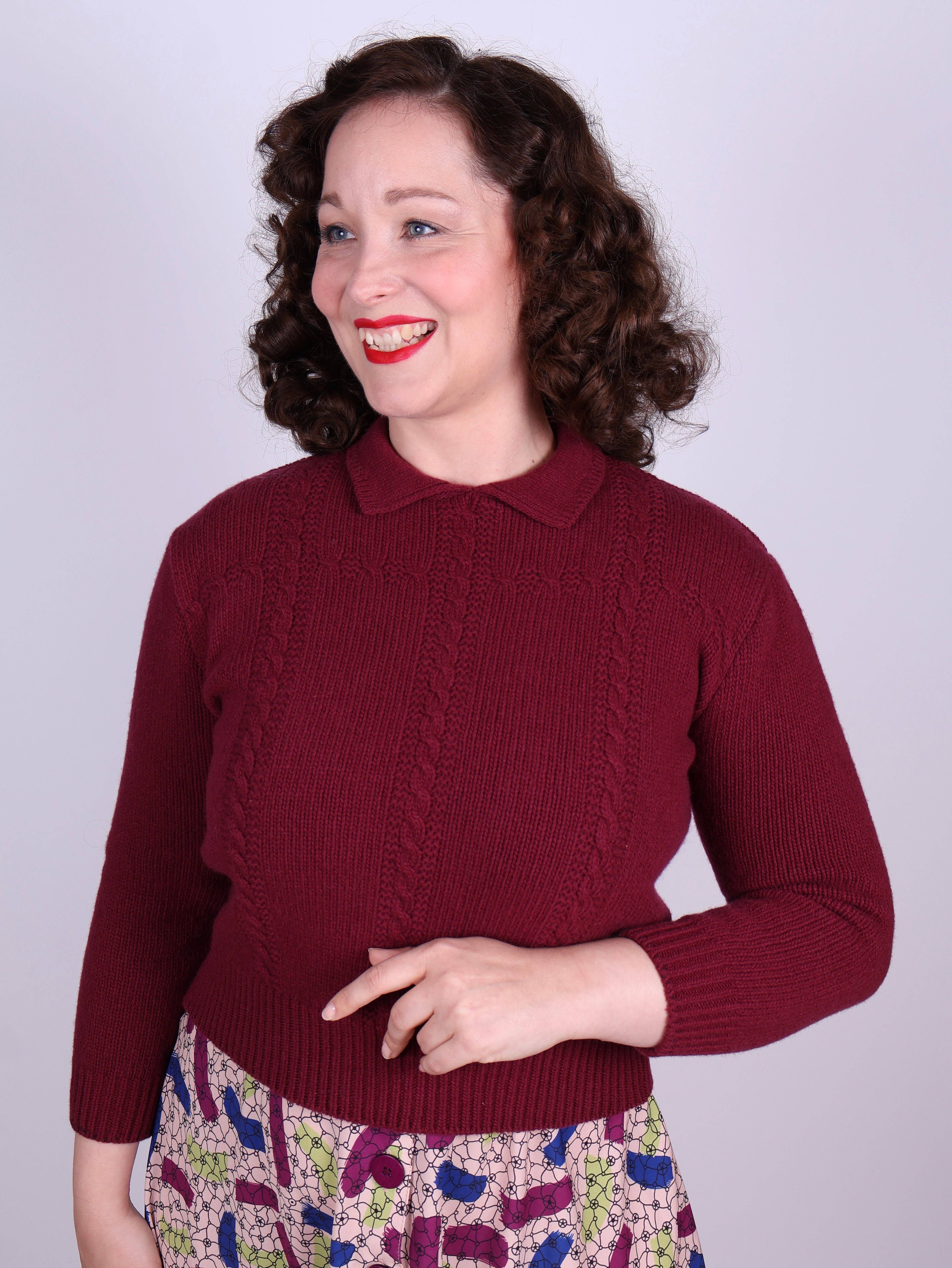 1940s vintage style pullover - Burgundy - Gertrud