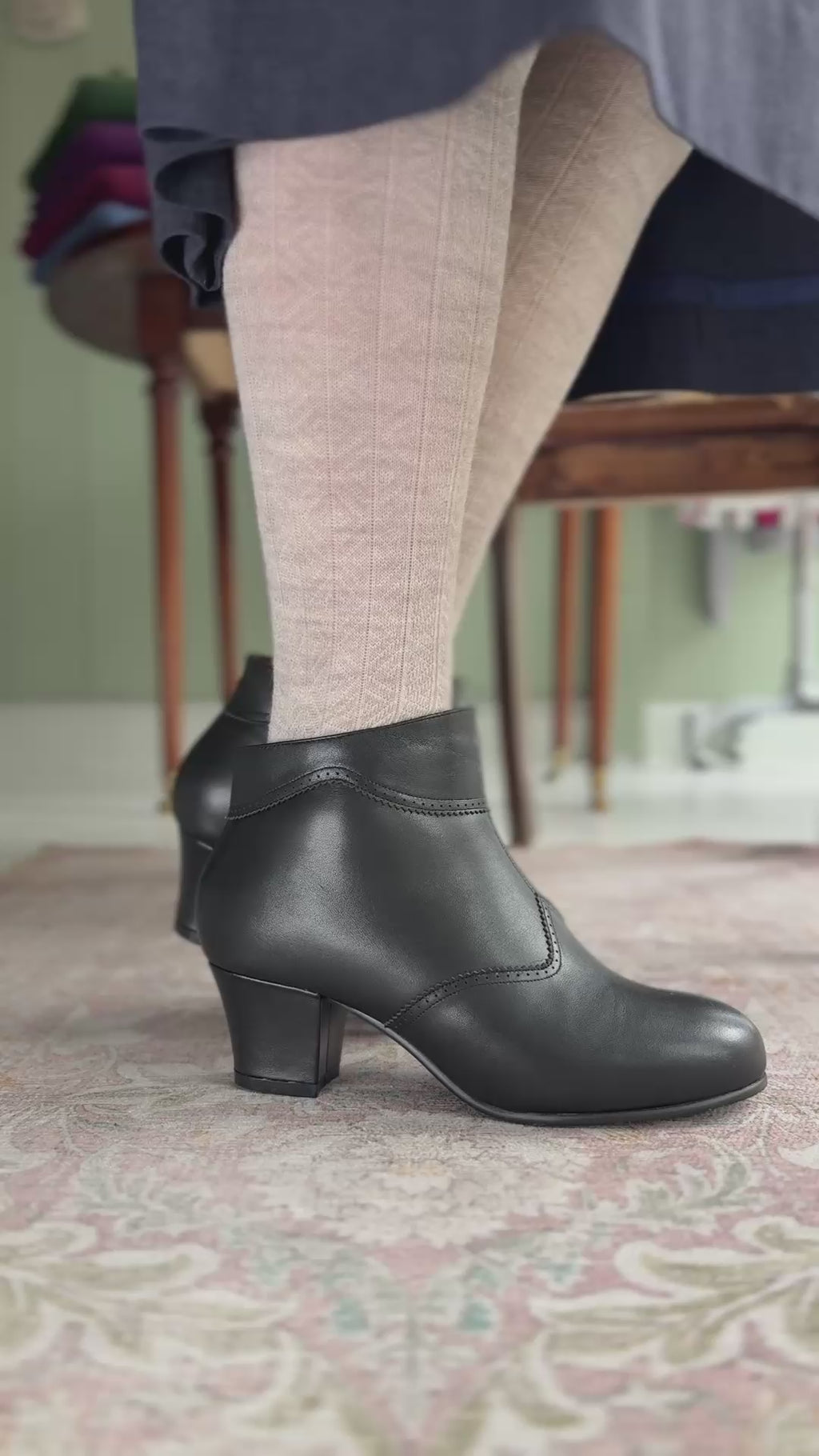1940s Winter Ankle Boots – Black – Marion